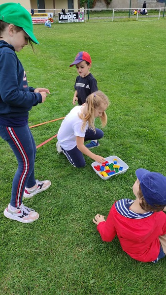 Nous sommes allés au stade et les élèves ont participé à différents ateliers sur le thème des contes: atelier Land art, atelier lectures, atelier Mémory, atelier sportif, atelier d'équilibre et quiz.