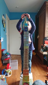 Réaliser le tour la plus haute avec des kaplas, des légos, des livres...