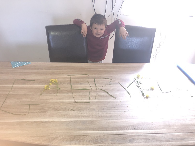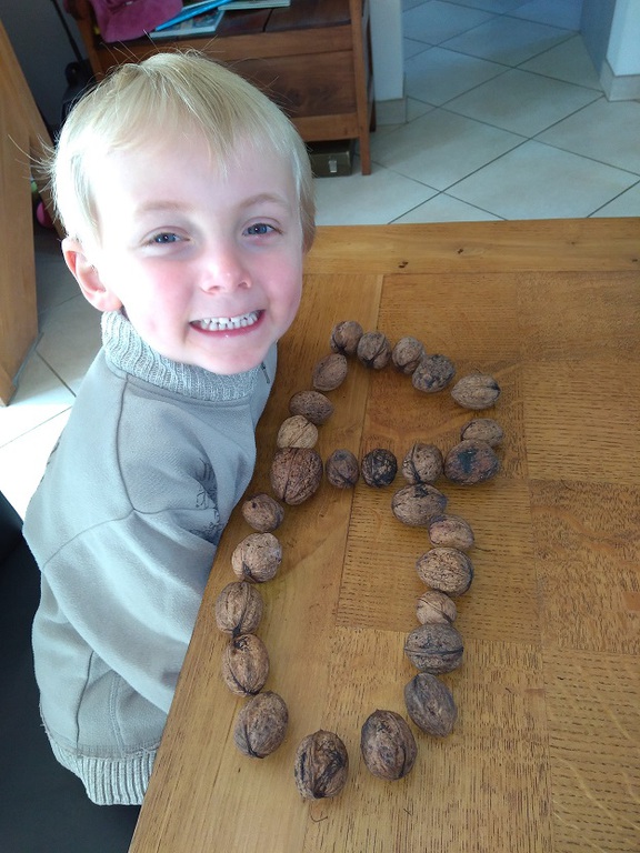 Ecrire l'initiale de son prénom avec des objets de la maison.