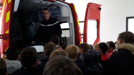 Fabien, sapeur pompier volontaire à Tréguier et papa de Jade et Cassandra, est venu passer un après-midi en classe pour nous apprendre les permiers gestes de secours. Après une explication historique de la grande institution des pompiers, les choses sérieuses ont commencé.