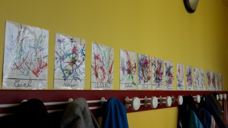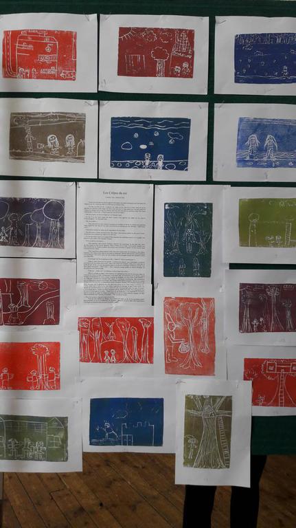 En sciences, nous avons étudié notre système solaire. Puis, en art plastique, nous avons représenté les planètes à partir de différentes techniques : collage, peinture, encre, craies grasses ...