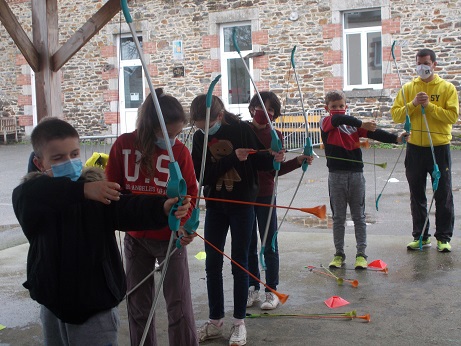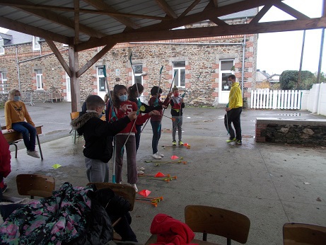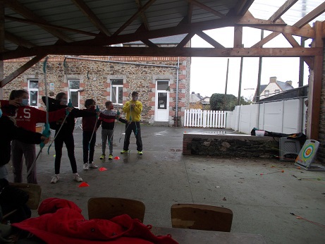 La journée initialement prévue au collège pour les CM ayant été annulée pour raisons sanitaires, nous avons bénéficié d'une séance d'EPS avec un professeur du collège. Les enfants ont découvert l'activité ''tir à l'arc'' qu'ils ont adoré.