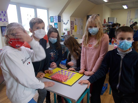 A l'occasion de la semaine des mathématiques, et après avoir chaque jour répondu à des enigmes mathématiques, nous avons eu la chance de bénéficier de l'intervention de la Ludothèque de Langoat pour une matinée ''jeux mathématiques''. Les enfants ont pris un grand plaisir à jouer.