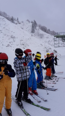 Nous avons fait notre premier cours de ski de la semaine. Nous étions en groupe avec nos moniteurs, ils sont très gentils. Nous avons descendu les pistes, appris à s'arrêter, ce qui n'est pas toujours facile...