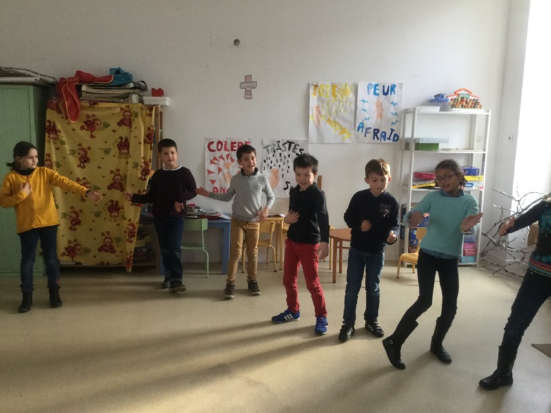 La semaine des vacances de Noël, Sophie est venue animer un atelier théâtre dans notre classe. Nous avons fait de nombreux petits jeux d'expression et de mîmes. Nous nous sommes bien amusés!