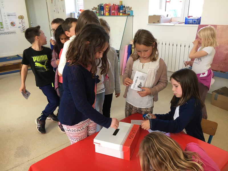 Tout au long de l’année, les élèves de cp-ce1-ce2 ont lu 5 livres sélectionnés de leur tranche d’âge, pour le concours du prix des incorruptibles. Les élèves ont utilisé comme les grands, leur carte d’électeur, un isoloir, des bulletins de vote, une urne, une liste d’émargement. Deux élèves s’occupaient du bon déroulement du vote.