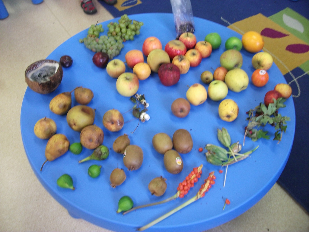 Les élèves ont apporté en classe différents fruits. Yvon, le grand-père de Maï, est venu expliquer comment les classer. Les enfants ont trié les fruits secs et les fruits charnus.