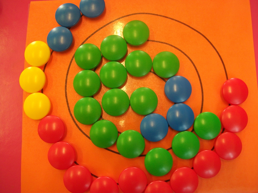 Les élèves de PS et de MS ont appris à tracer des spirales. Tout d'abord ils ont placé des pions sur des spirales déjà dessinées puis ils en ont réalisées en pâte à modeler et enfin ils en ont tracées avec des crayons.