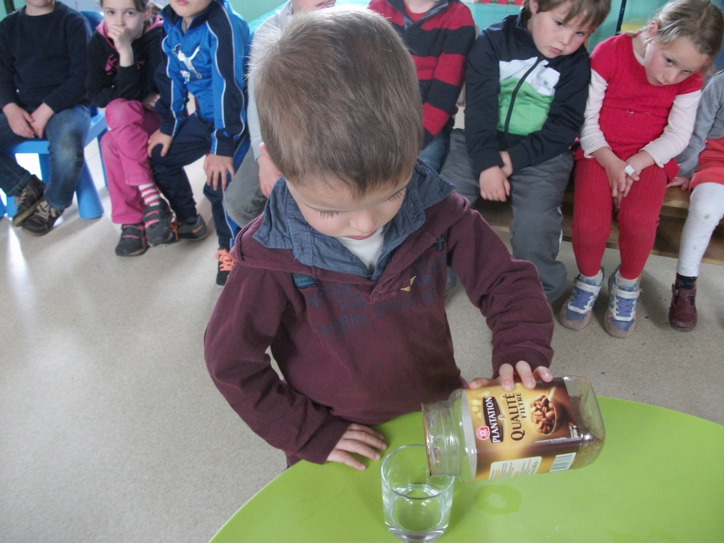Pour terminer nous avons réalisé des mélanges de matières (huile, café, farine, sucre) avec de l'eau.