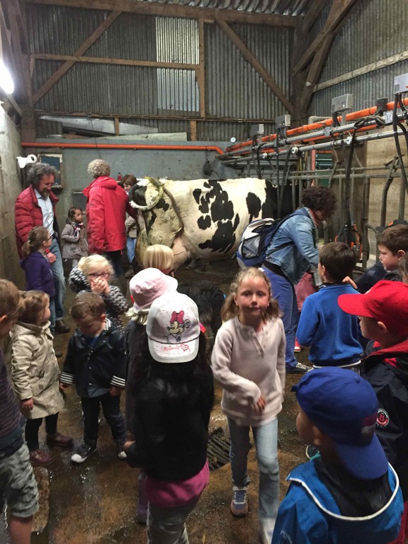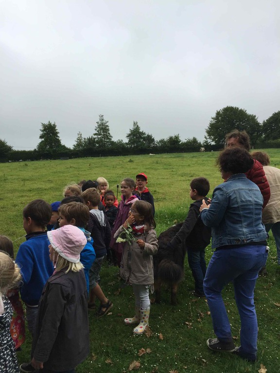 Les élèves ont trait la vache, ils l'ont envoyée avec son veau au champ, ils ont donné à manger aux cochons, aux chèvres et aux moutons, ils ont observé le dindon, les poules, les poussins et les lapins. Enfin, en fin de journée ils ont fait une petite promenade avec Margot l'ânesse dans la carrière.