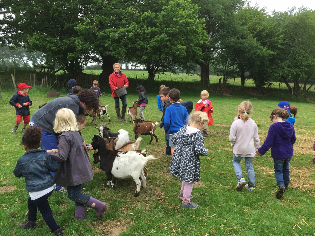 Nous sommes allés en car à la ferme pédagogique de Pont-Melvez. Philippe nous a accueilli et nous a fait découvrir les animaux.
