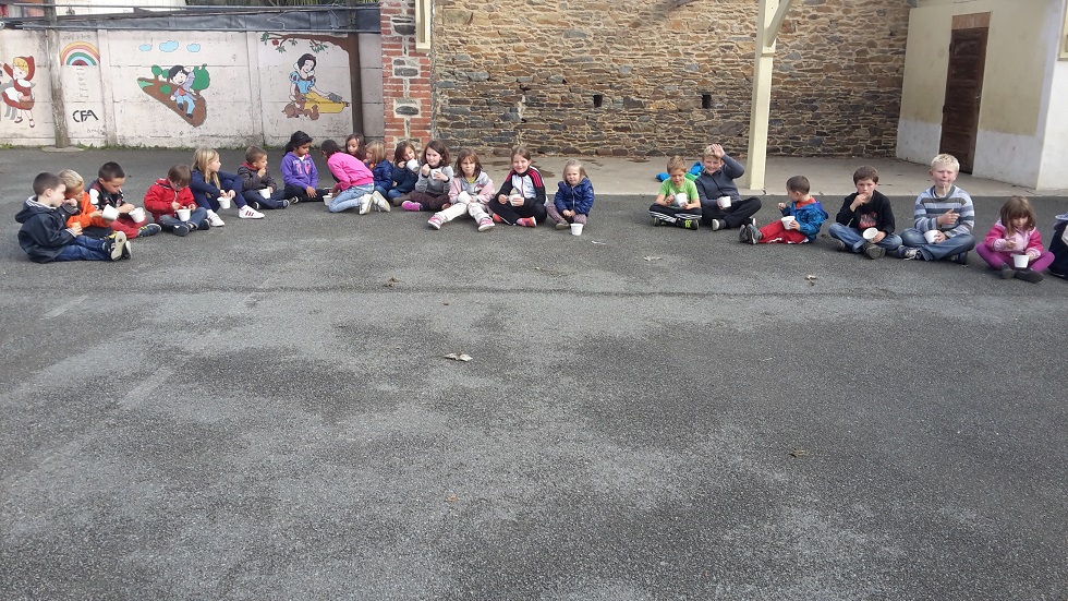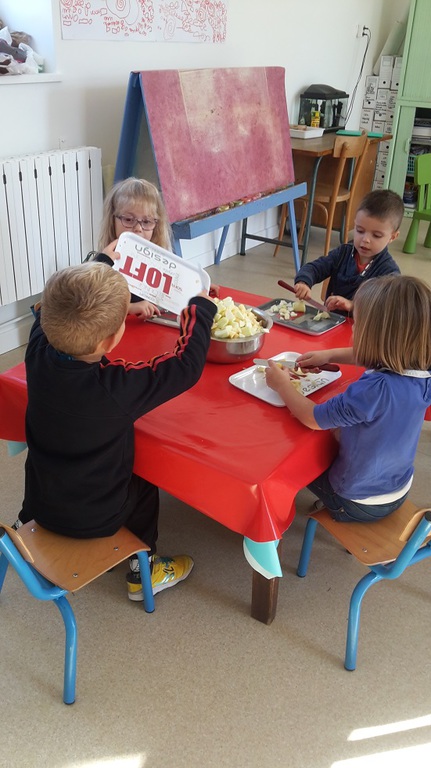 A l'occasion de la semaine du goût, les élèves ont pu observer, sentir et toucher différents fruits et légumes. Ils ont également invité toute l'école pour goûter la compote de pommes qu'ils ont réalisée.