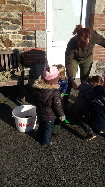 Les élèves jardinent