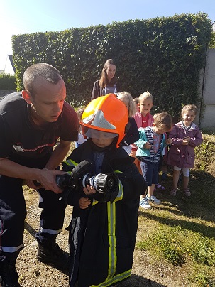Après avoir reçu Fabien Fouquet en classe, nous nous sommes rendus à la caserne de Tréguier. Les élèves ont vu les différents véhicules et mis les casques et les vestes. Ils ont même essayé de faire fonctionner la lance à incendie.